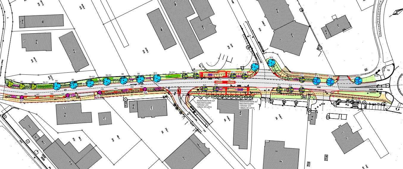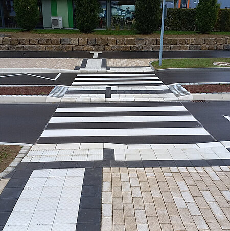 Kommunaler Straßenbau (Gemeindestraße) | Kreuzung, ohne Lichtsignalanlage | Verkehrsplanung (Rad- und Fußverkehr, Fußgängerüberwege) | barrierefreie Bushaltestellen | Freiflächenplanung (Grünanlagen, Mauern) | Gestaltung, Ausstattung öffentlicher Raum (Bodenbeläge, Bepflanzung, Beleuchtung) | Leitungsplanung (Entwässerung, Beleuchtung, Breitband)