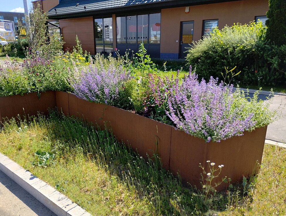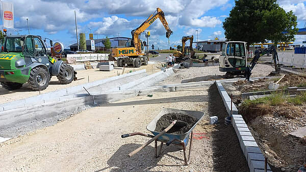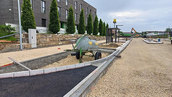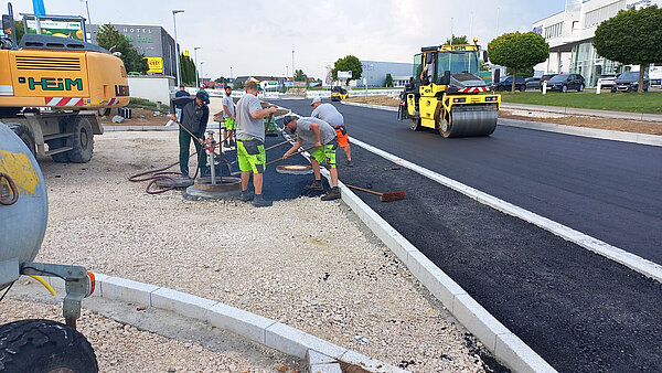 5.900 m² Asphaltarbeiten Straße, Geh- und Radweg (3,5 m breit) | 6,5 – 7,0 m Fahrbahnbreite | 2.000 m Randeinfassung | Belastungsklasse 3,2 | 2 Bushaltestellen | 130 m Natursteintrockenmauer 1-3-lagig | 8 Cortenstahl-Hochbeete | 13 Solitärbäume