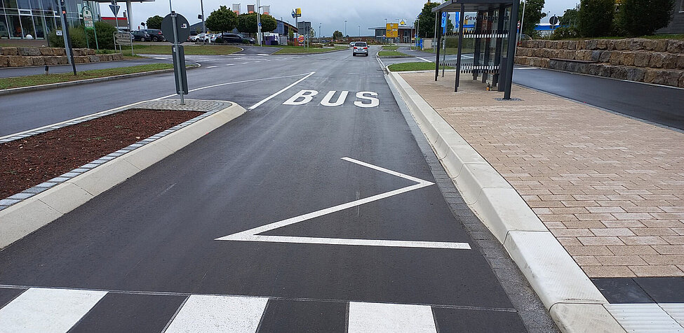 Für den öffentlichen Nahverkehr wurden barrierefreie Bushaltestellen mit Warteunterständen eingerichtet. Zusätzlich sorgen teils mit integriertem Fußgängerüberweg gestaltete Querungshilfen für eine sichere Überquerung der Fahrbahn.
